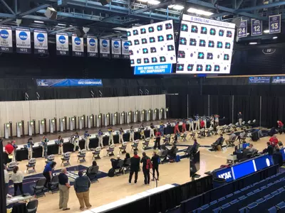 In 1919, The University of Akron entered into contract with the United States Army to provide a shooting facility for the purpose of training members of the Army ROTC. Starting in 1919 The University of Akron ROTC started competing in sanctioned rifle matches. The marksmanship program received many national honors under the guidance of the military. In 1967 the Athletic department at The University of Akron fielded its first rifle team supported by the athletic department. The following year, the new shooting facility located in Shrank Hall South was opened. The ten-point, 50-foot, computerized electronic facility was the first of its type in the state of Ohio. After many years of reliable service, the facility has completed several renovations and updates which involved the replacement of the electronic target carriers, the shooting stalls, the ventilation system, target lighting, and the bullet backstop. The facility remains one of the premier shooting facilities in the state. :In addition to the smallbore rifle facility the team has access to a separate 8 point, 10 meter air rifle facility. This allows the team to train and conduct competitions with up to 18 athletes at one time. Thanks to the generous support of H&M Metal Processing in Akron, Ohio, new state of the art Sius electronic scoring systems were installed prior to the 2013 rifle season. Rifle matches will now be much more spectator friendly and will be live streamed over the internet.