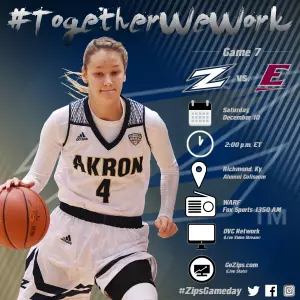Seeking to extend its winning streak to three straight, Akron closes out a three-game road swing on Saturday, Dec. 10, as the Zips travel to Richmond, Ky., to square off against Eastern Kentucky. Game time in the matinee affair at Alumni Coliseum is set for 2 p.m.