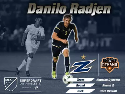 LOS ANGELES, Calif. - University of Akron men's soccer senior Danilo Radjen (Broadview Heights, Ohio) capped a stellar collegiate career with his selection in the MLS SuperDraft by the Houston Dynamo with the 14th selection of the second round (36th overall) on Friday, Jan. 13.