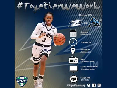 Akron gets its first look at Buffalo this season as the Zips travel to Buffalo, N.Y., for a showdown with the Bulls on Saturday, Feb. 18. Game time at Alumni Arena is set for 1 p.m.