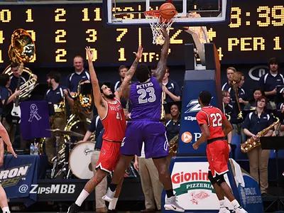 Johnson led the way for the Zips (20-4,10-1 MAC), scoring 20 points and pulling down a game-high nine rebounds. Jimond Ivey (Cleveland, Ohio) chipped in 10 points and Antino Jackson (Houston, Texas) added eight points and five assists.