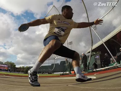 Senior Phil Jagers (Solon, Ohio) unleashed a throw of 203-6 (62.04m) to claim the triumph in the men's discus, while posting a mark of 172-4 (52.52m) to place third was junior Maurice Harris (Toledo, Ohio).