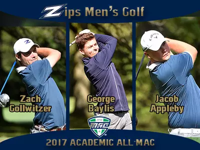 Cleveland, Ohio – The Akron Zips men's golf team placed three golfers on the Mid-American Conference All-Academic team as senior Zach Gollwitzer (Ballwin, Mo.), junior George Baylis (Ascot, England), and sophomore Jacob Appleby (North Canton, Ohio) earned Academic All-MAC honors, the league announced Friday.